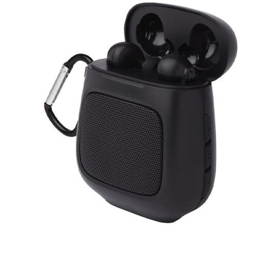 True Wireless earbuds with a Bluetooth speaker.
