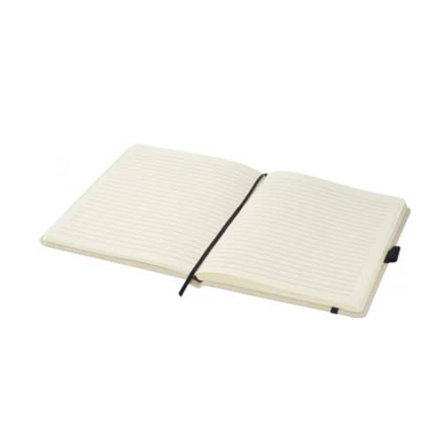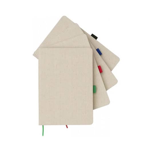 A5 canvas material notebook with coloured elastic closure and ribbon. Includes an elastic pen loop and 80 sheets (70g/m2) lined paper. Cotton Canvas. A5 notebooks are suitable to be custom printed with your brand name or company logo. Ideal for corporate branding gifts or special thank you gifts for clients!